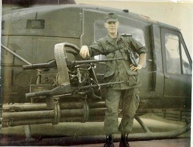 CWO David Burns beside his UH-1C Huey gunship in Vietnam.